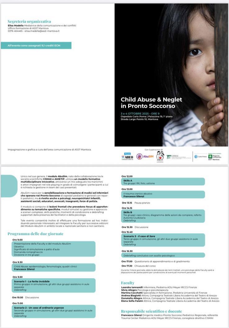 Sono stati coinvolti 30 tra pediatri e infermieri pediatrici dell’Ospedale di Mantova e Borgo Mantovano con un’attività intensiva che ha coniugato saperi tradizionali e metodologia esperienziale per una miglior presa in carico dei bambini maltrattati.